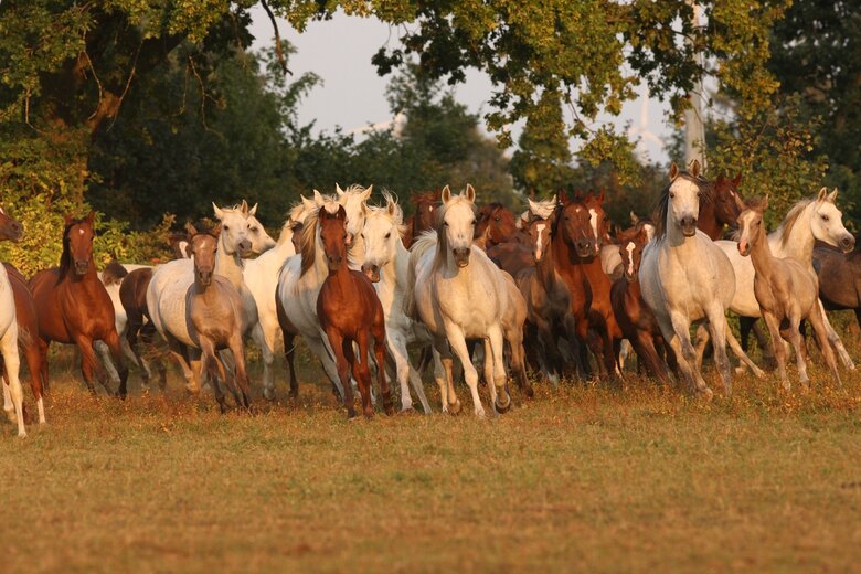 The daily grazing for strengthening the heart, lungs and musculoskeletal system, raising the foals in large pens and optimal feeding form the basis for healthy development. A local veterinarian is always available to ensure the best possible medical care. Countless victories throughout Europe on international shows, tournaments and races prove that the breeding goal is archived as far as possible.